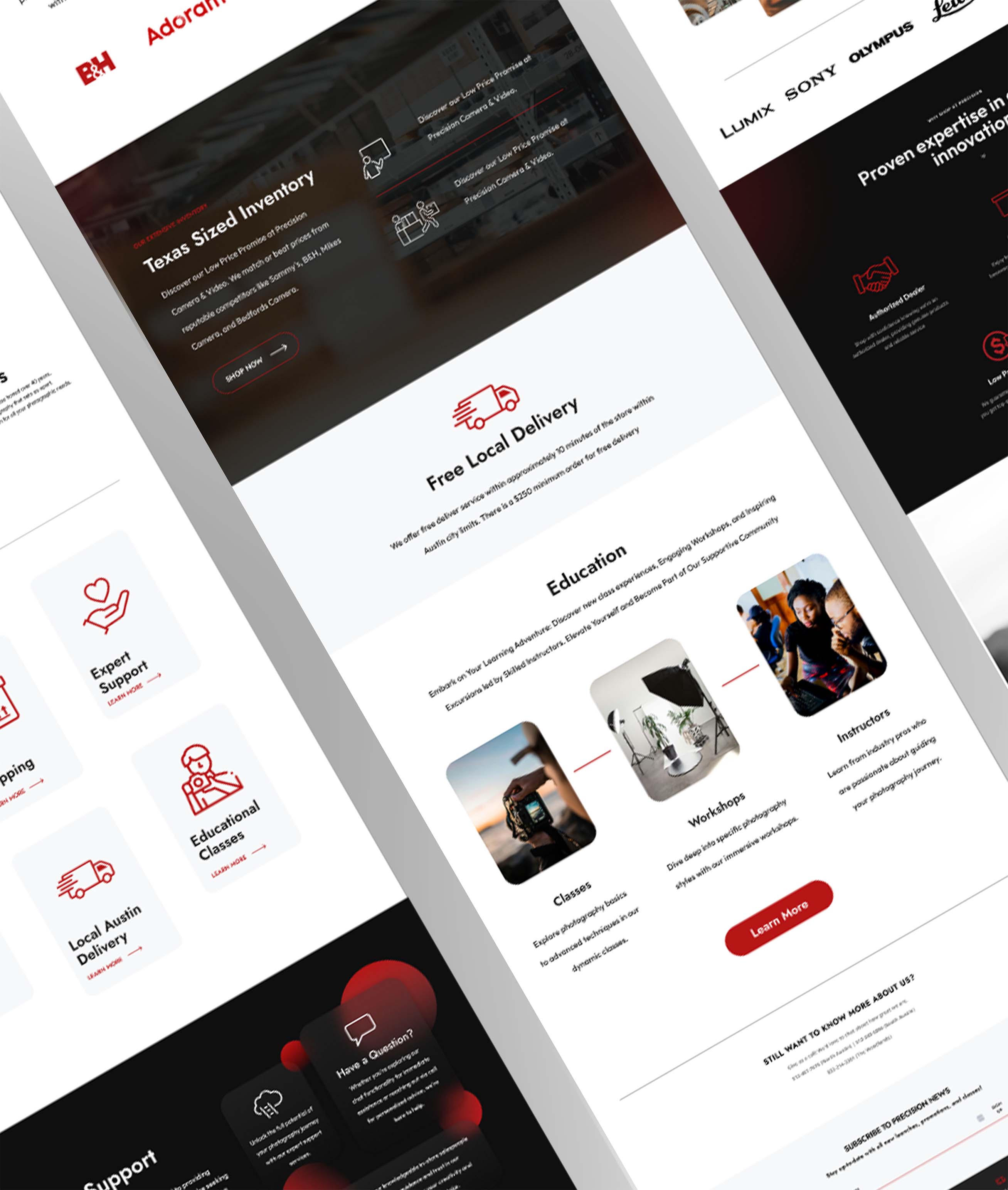 Precision Camera & Video sought to elevate their website experience to better reflect their position in the creative industry. While working alongside their development team, Luma Studios was contracted to provide UI inspiration, layout direction, and visual concepts to help shape the overall look and feel of the platform. We developed a series of design explorations focused on modern e-commerce trends, improved visual hierarchy, and intuitive navigation patterns. Through curated references, layout systems, and interface concepts, we helped establish a clear creative direction—ensuring the final product would feel clean, engaging, and aligned with the expectations of today’s photographers and filmmakers. Our role was to bridge inspiration with execution—equipping the development team with a strong visual foundation to bring the experience to life.